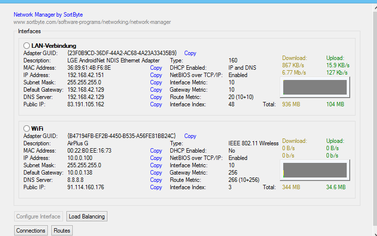 Kann es sein, dass das eine Netzwerk nicht genug belastet wird, damit Windows load balanced?