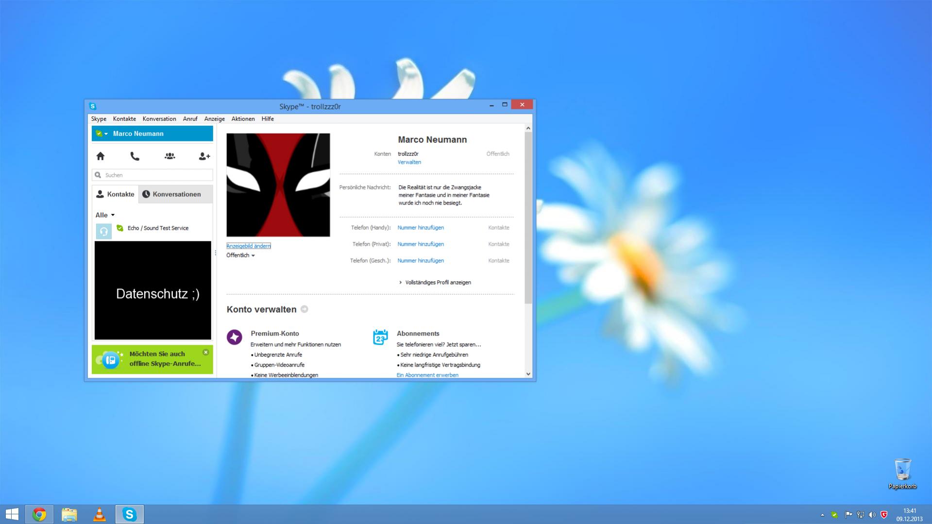 Wie du hier auf meinem PC siehst gibt es eine funktionierende Desktop-Version von Skype für Windows 8.