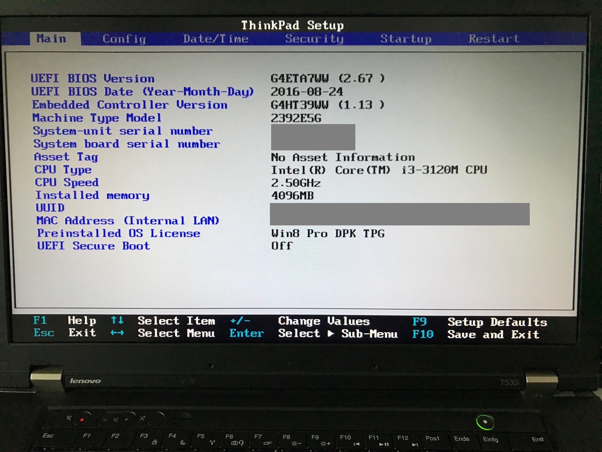ich habe hier ein Thinkpad T530i mit einem Windows 8 Pro Aufkleber drauf.