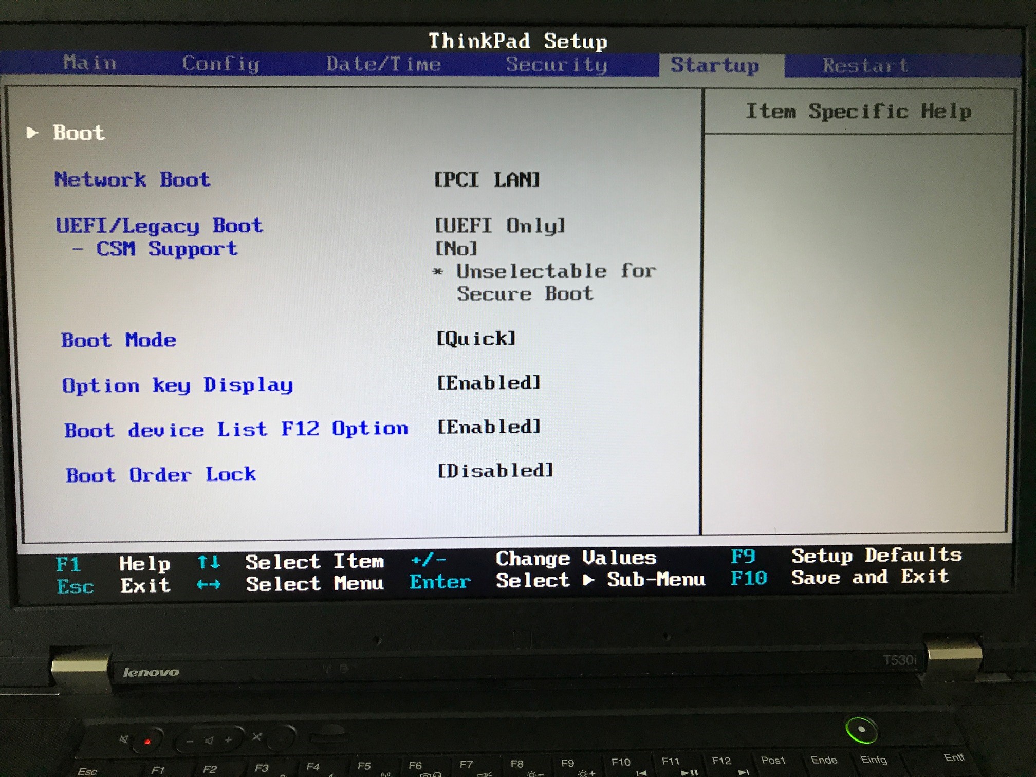 - Einstellen des Geräts auf UEFI Mode / Safeboot / CSM deaktiviert / Reset to Setup Mode