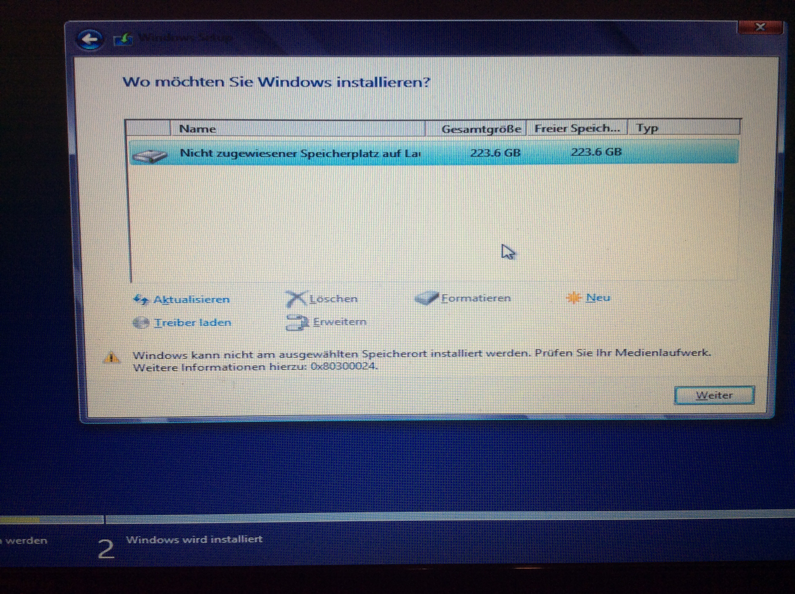 Also musste ich ihn ausschalten da er auf nichts reagiert hat und wo ich ihn einschalten wollte kam immer eine komische Fehlermeldung und mit der Windows DVD konnte ich ihn auch nicht reparieren anbei das Foto.