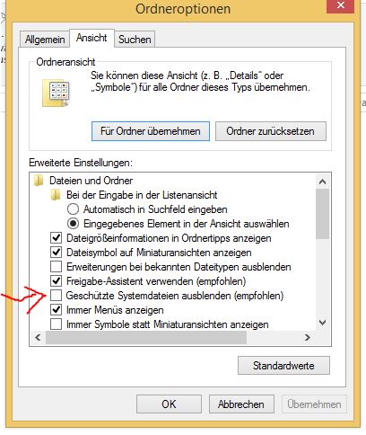 Systemordner ein und ausblenden hab ich auch noch gewählt
