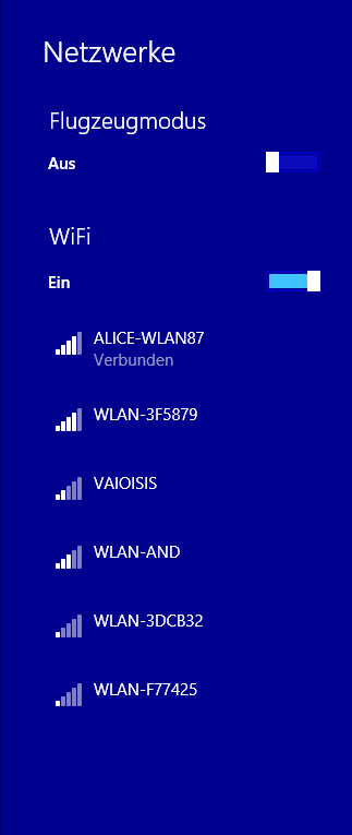 Wenn ich auf das WLAN-Symbol in der Taskleiste klicke, zeigt er mir "alle" verfügbaren Verbindungen an.