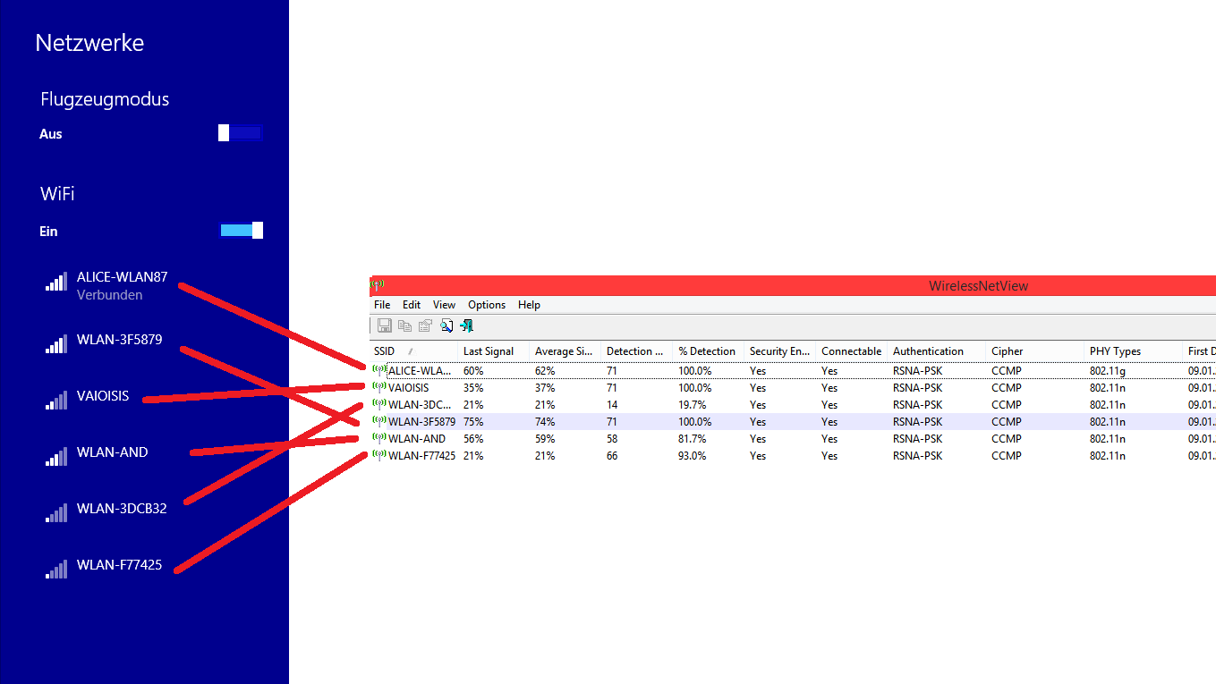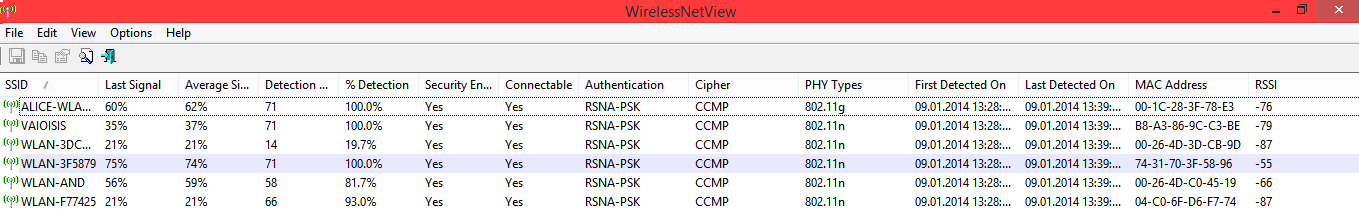 Um mir zu bestätigen, dass ich nicht falsch liege, habe ich mir das Tool "WirelessNetView" heruntergeladen.