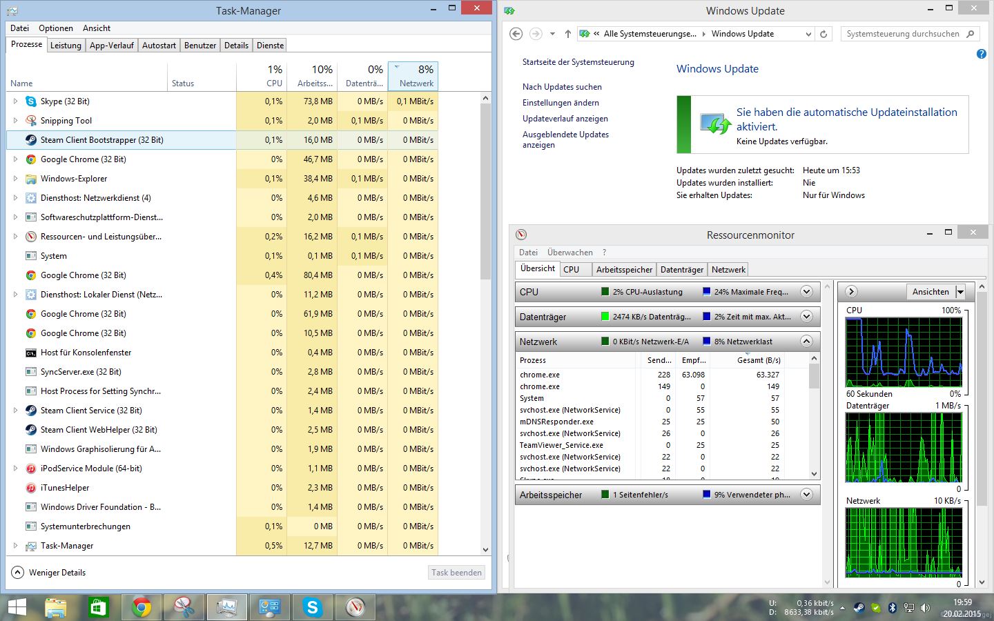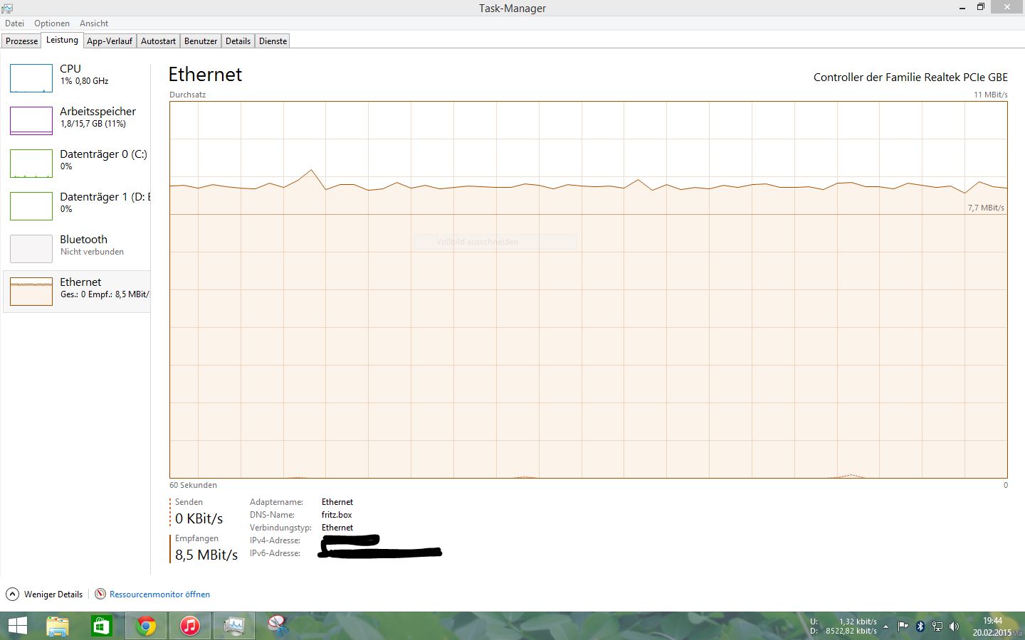& Chrome läuft gerade Youtube .. aber das zieht keine 8.5 Mbit ..