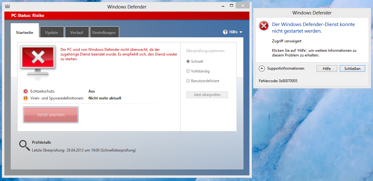 [GELÖST] Windows 8 - Defender 0x80070005 Error