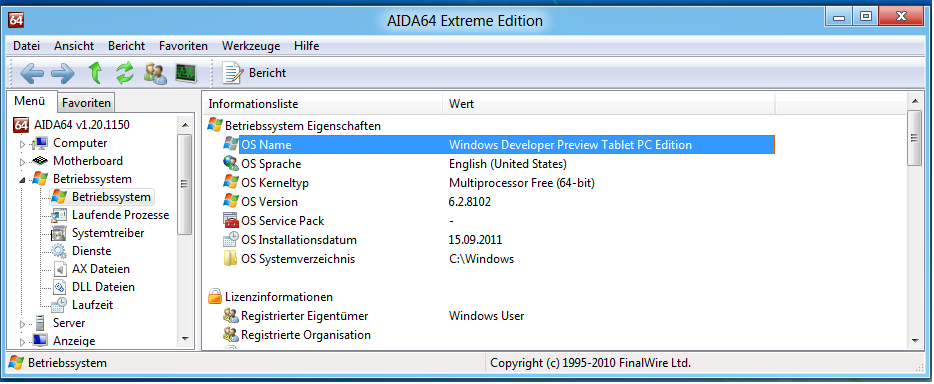 Das ist eine Windows Developer Preview Tablet PC Edition laut aida64