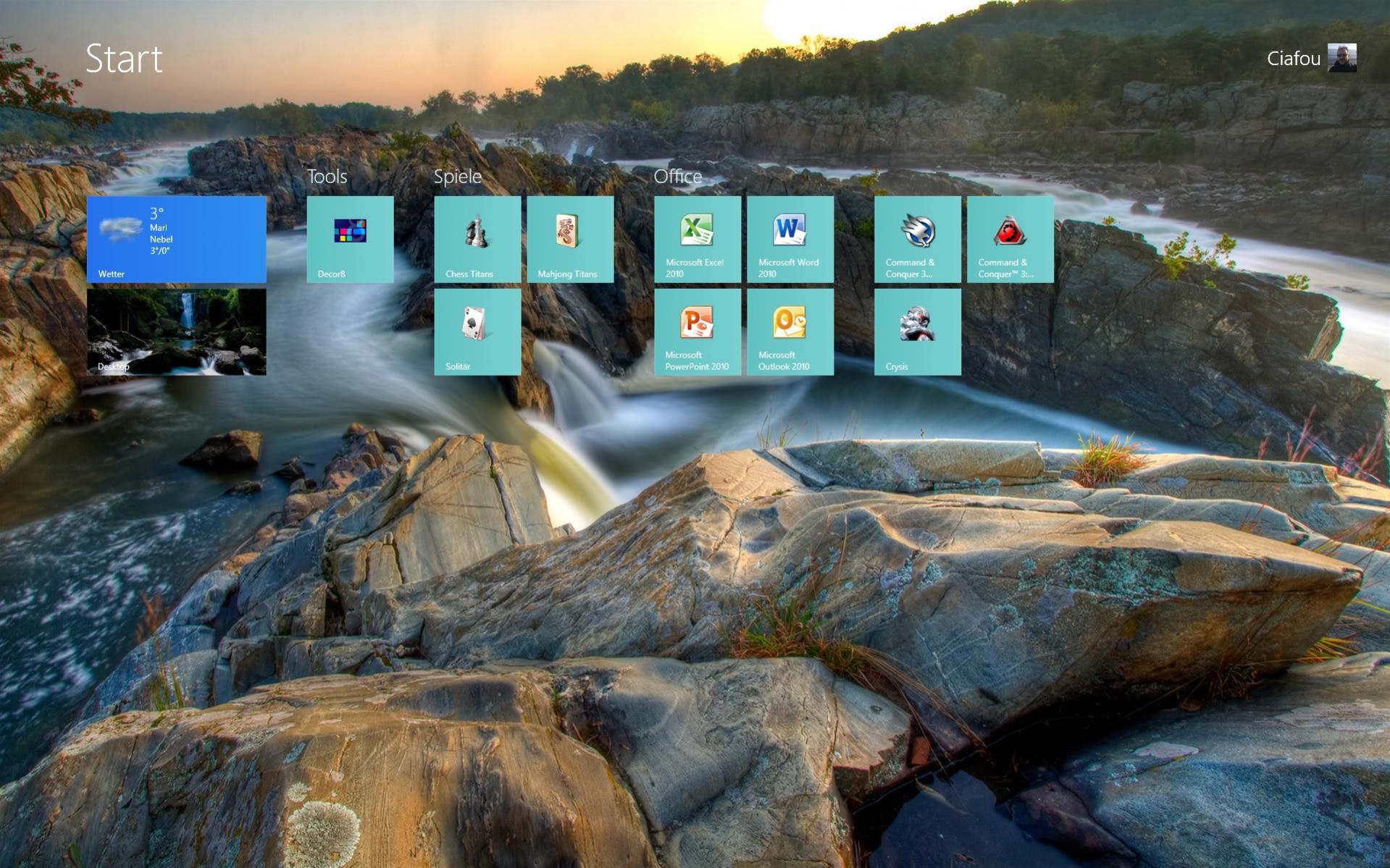 Als Tools nutze ich derzeit Stardocks Decor8, um die Modern UI anzupassen und Classic Shell für das Startmenü auf dem Desktop.