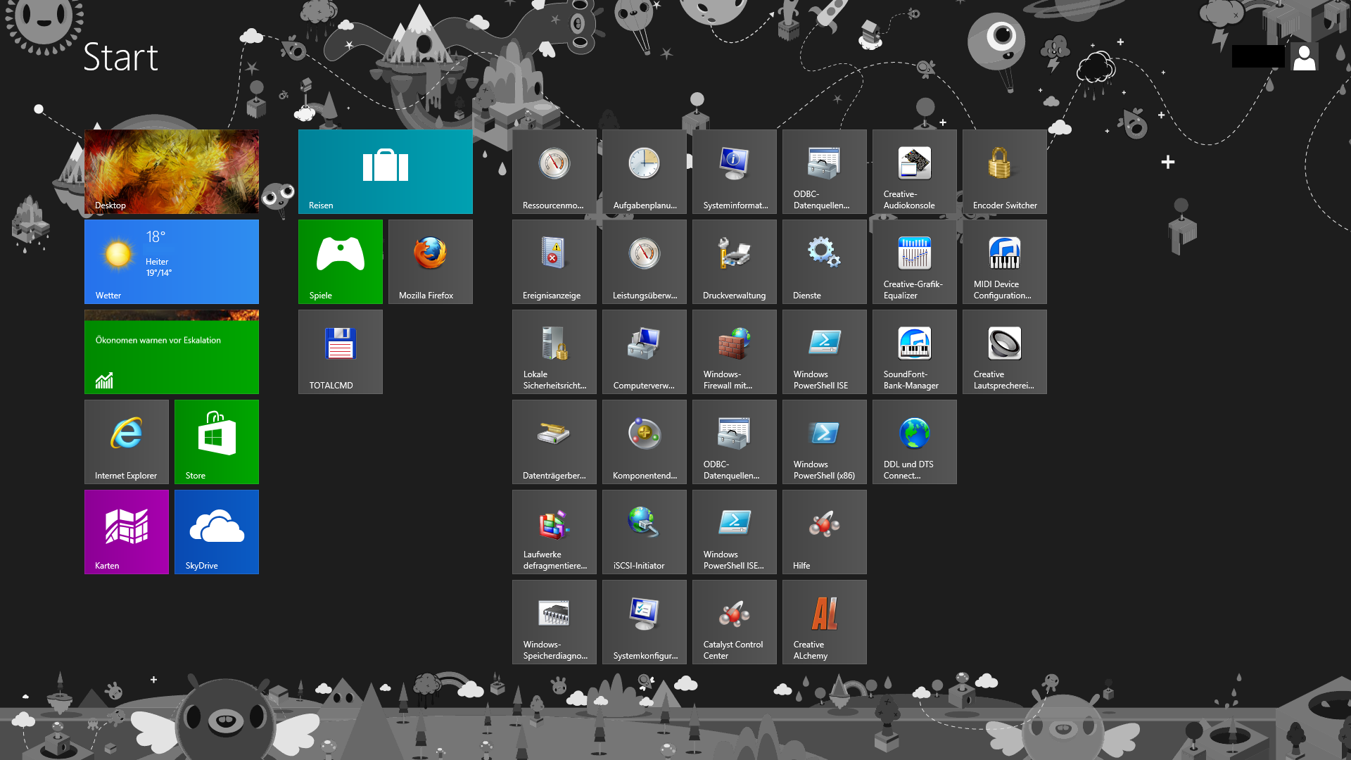Man kann ja nicht mal seine Kacheln umbenennen. Das hat den genialen Effekt, dass Programme wie Dateien heißen. Dank der "Übersicht" ist auch die Schriftgröße gewachsen, man kann alles prima lesen - wenn nicht jede zweite Beschriftung mit "..." abgekürzt werden muss. Die Nachrichten-App ist ja auch toll. Eine wilde Auswahl von vorausgesuchten Quellen die man nicht löschen kann. In der Wetter-App kann man nicht in Ruhe scrollen, ohne mit der Maus über die "stündliche Vorhersage" zu kommen, wo es dann nämlich automatisch RUNTERscrollt. Außerdem kann ich da noch nicht mal wie auf dem Metro-Hauptscreen die verschiedenen Orte-Kacheln herumschieben.