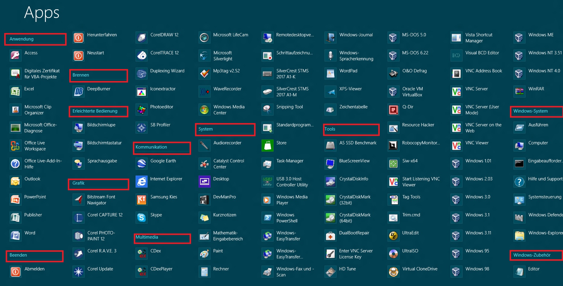 Das … versteh ich zugegebenermaßen nicht. Rechtsklick mache und auf alle apps gehe, seh ich da alle apps nach hersteller sortiert und kann sie nach abc sortieren lassen.