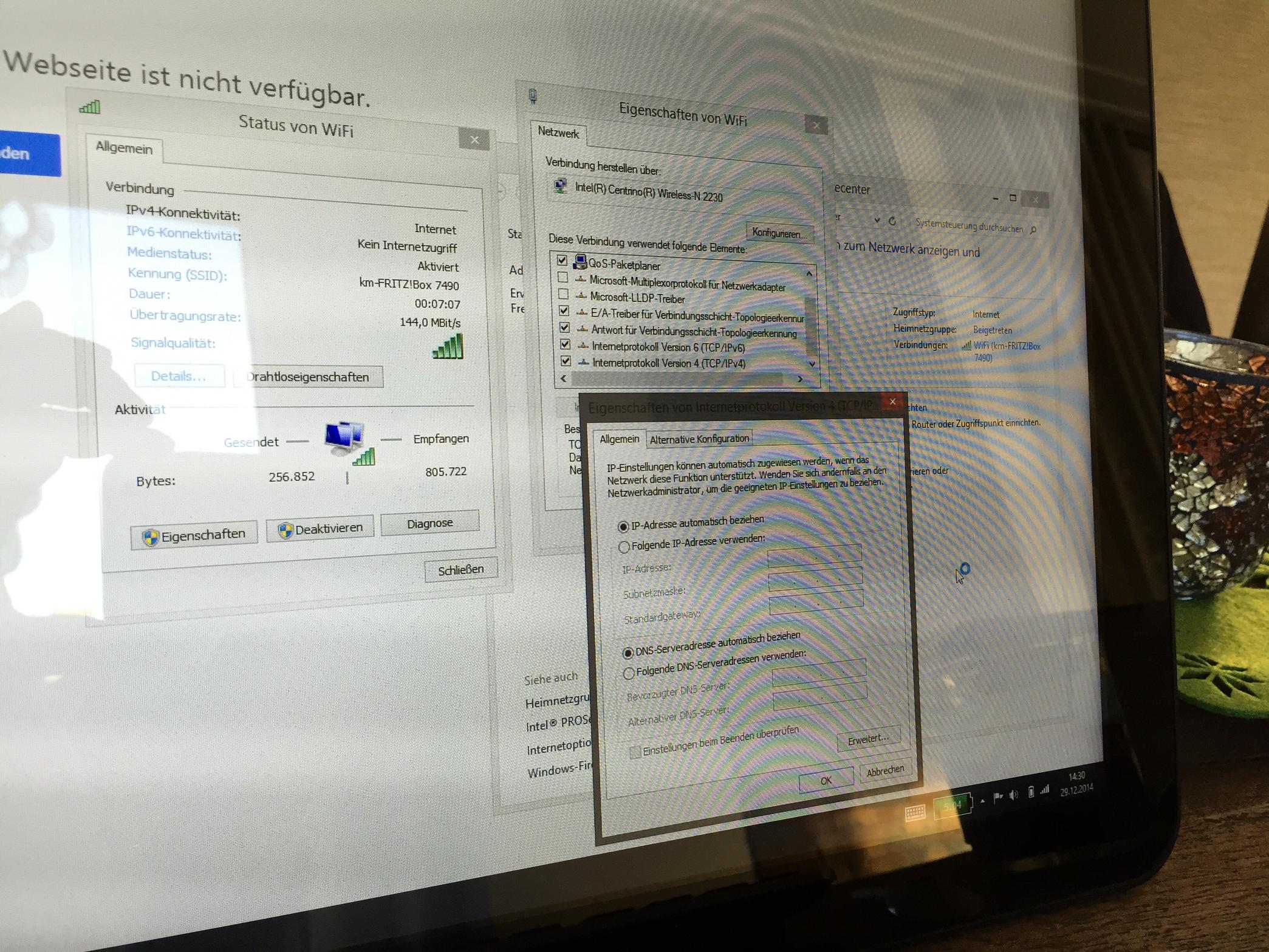 Der Windows 8 PC meiner Eltern kommt nicht ins Internet. Laut Aussage meiner Eltern haben sie nichts an den Einstellungen geändert. Wenn ich die Problem Behandlung von Windows Öffne erkennt er oft dass das Standard Gateway nicht verfügbar ist oder das Problem kann nicht identifiziert werden... der PC ist das einzige Gerät im Netzwerk mit einem WLAN Problem.