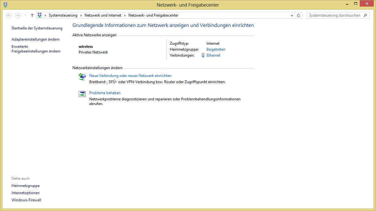 Ich habe per Registry auf Privatnetzwerk umstellen müssen, da die Option in den Einstellungen nicht verfügbar ist, überhaupt sieht der Bildschirm anders als üblich aus.