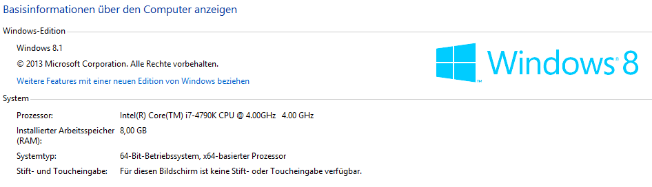 Ich habe mir vor 2 Wochen meinen neuen PC selber zusammengebaut. Als Betriebssystem Win 8 gewählt.