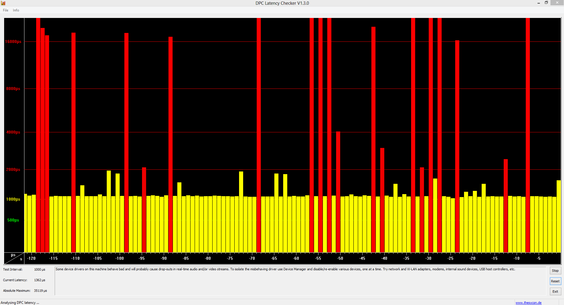 Habe mal nach diesem Problem gegoogelt und in einem Thread in diesem Forum schrieb jemand man solle den "DPC Latency Checker" durchlaufen lassen.