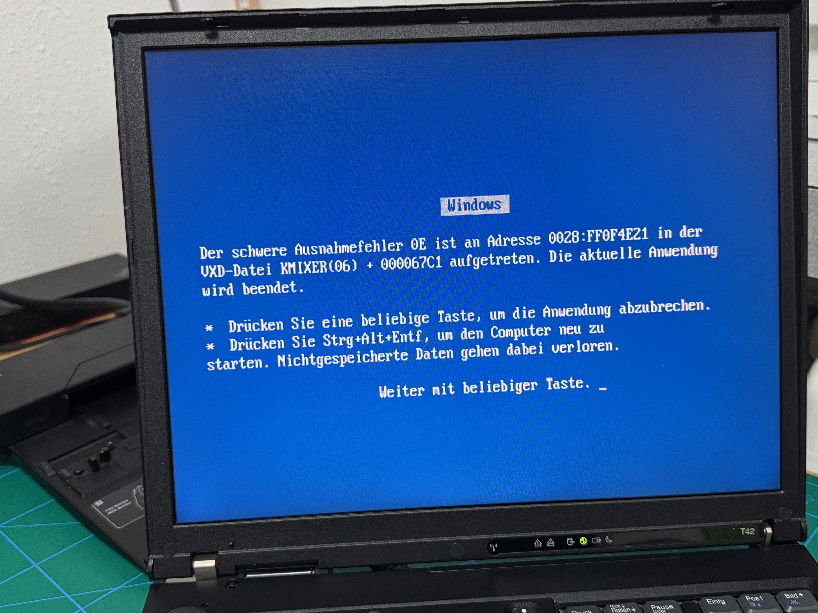 Habe mir einen IBM ThinkPad TP42 zugelegt mit einer Radeon 7500, jetzt stehe ich jedoch vor einem Problem. Windows 98 SE Sobald ich Max Payne starte, erhalte ich mehrere schwere Ausnahmefehler 0E VXD. Da mein Audio bisher super funktionier hat, finde ich leider keine andere Lösung die auf VXD deutet.