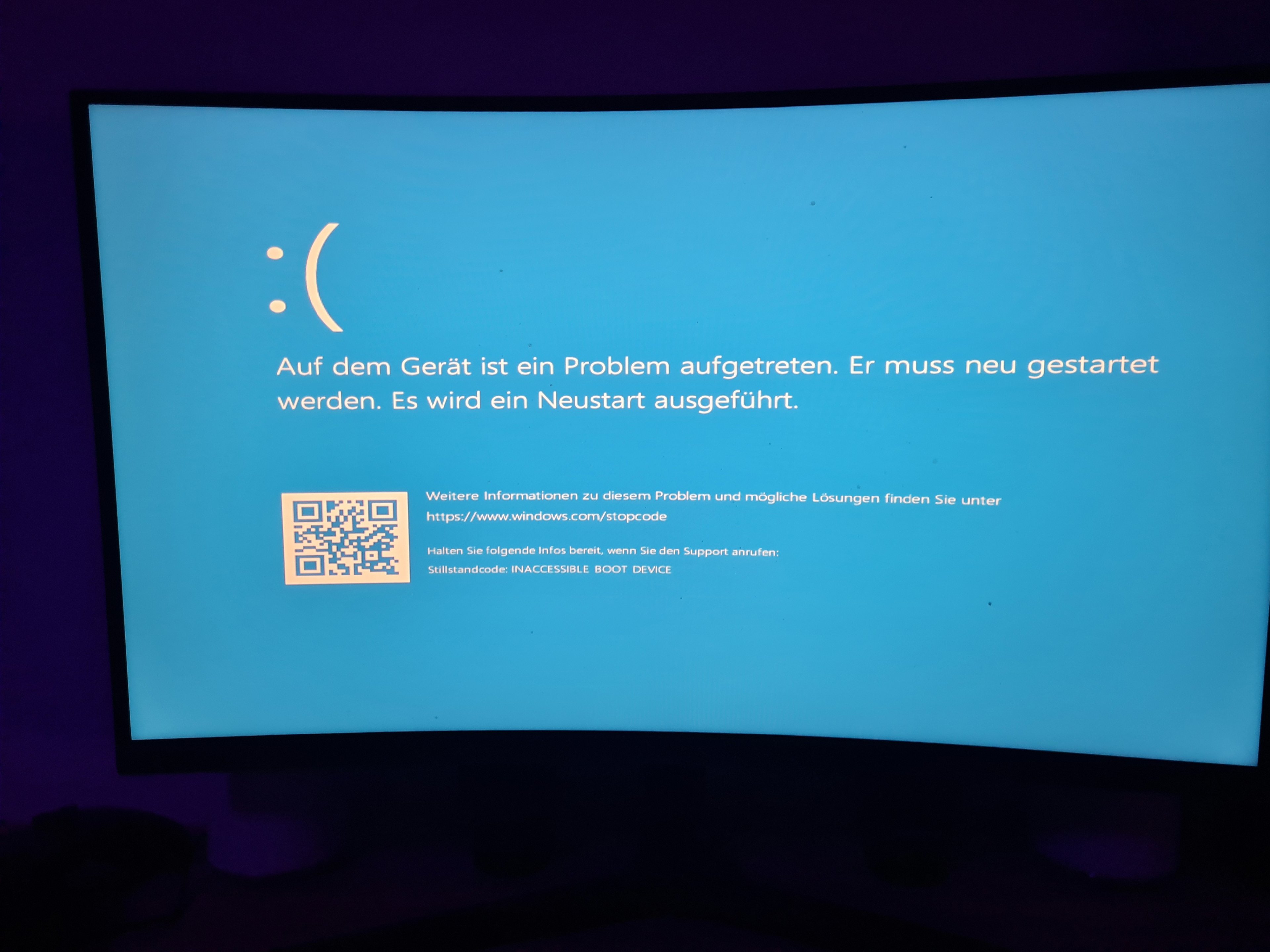 Guten Tag, gestern Abend habe ich meinen PC wie immer hochgefahren, um eine Runde zu zocken. Dann habe ich von Gigabyte (Die Marke meines Mainboards) eine Mitteilung bekommen, dass ich meine Treiber aktualisieren sollte. Das habe ich dann auch gemacht, daraufhin ist mein PC dann heruntergefahren und ich habe einen Bluescreen bekommen. Da stand inaccessible boot device. Ich gehe also mal davon aus, dass
