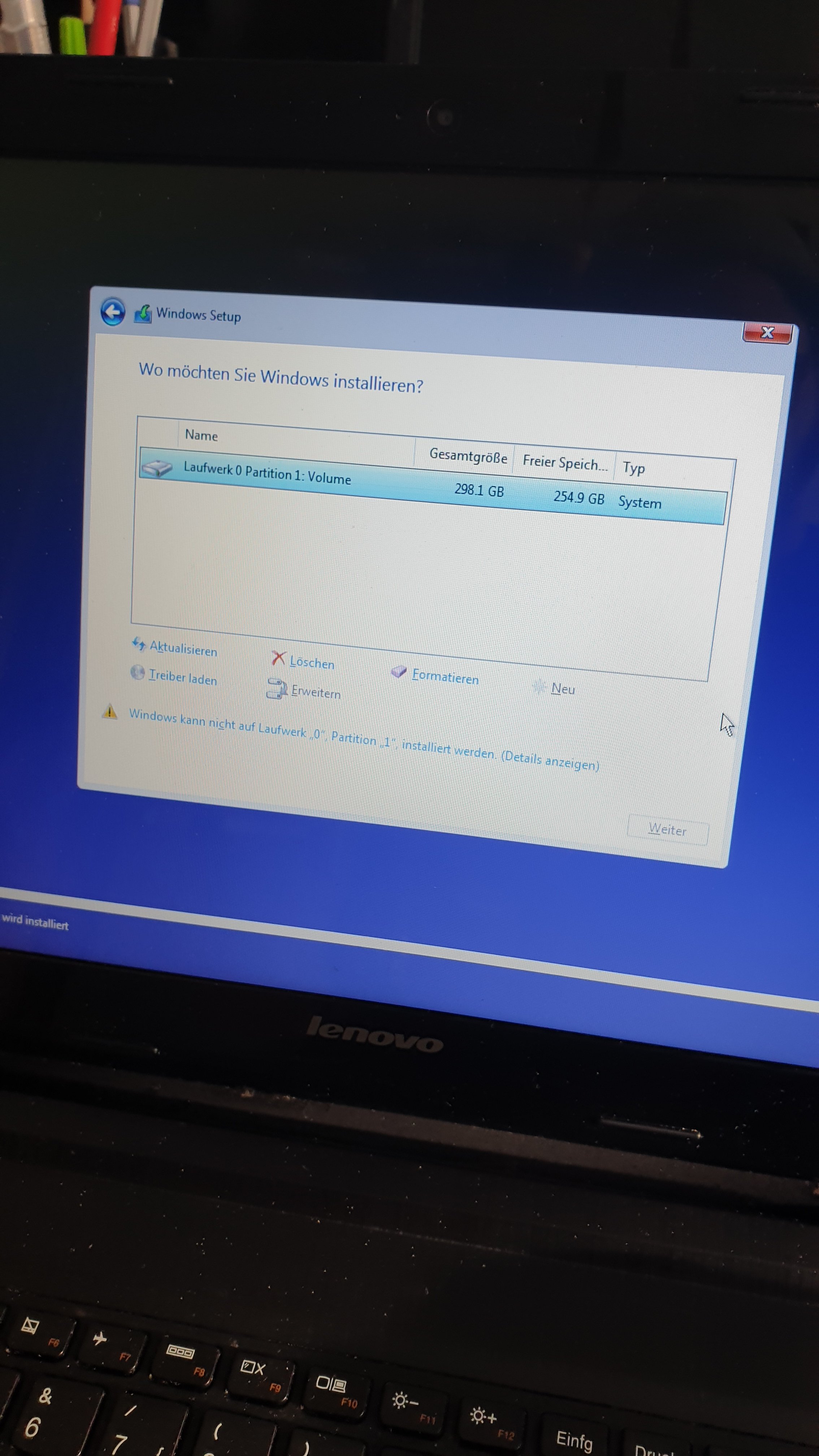 Da der Laptop lahm geworden ist, wollten wir alles auf Werkeinstellung setzen und auch auf Windows 10 upgraden.
