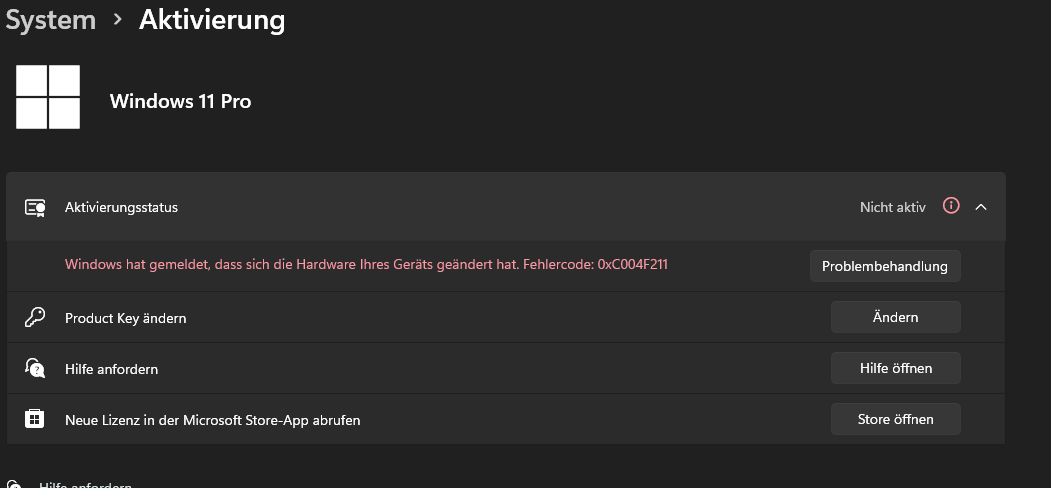 Angeblich hat sich die Hardware geändert, ich habe aber nichts neues eingebaut.