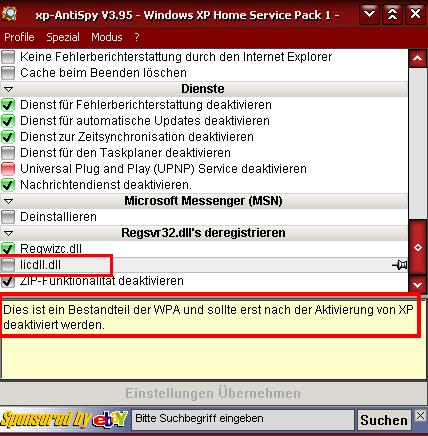 ich sitze bei einem Bekannten am Rechner, der sein Windows XP Home Edition nicht aktivieren lassen wollte und scheinbar diverse Tools dafür benutzt hat. Ich konnte ihn jedoch überzeugen, dass das Aktivieren seines Windows Vorteile mitbringen würde... z.B. Internet Explorer 7 oder den neuesten Media Player etc... Er hat ein ein legales Windows mitsamt Lizenz-Key etc.. aber wenn ich im Startmenü auf "Windows aktivieren" klicke passiert nichts. Ein manuelles starten von "C:\WINDOWS\system32\oobe\msoobe.exe" bringt auch nichts. Es passiert einfach nichts.