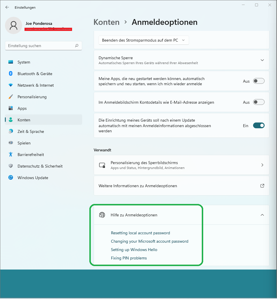 wie kann ich/man sein Windows anmelde Passwort ändern, wenn es in den Einstellungen nicht angezeigt wird(siehe Screenshot)?