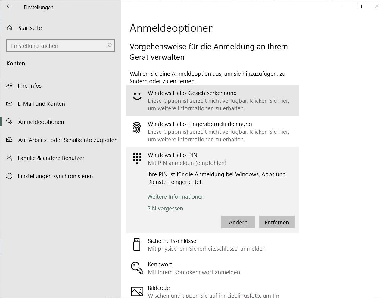 den PIN mit dem ich jetzt in Windows komme weiß ich noch.