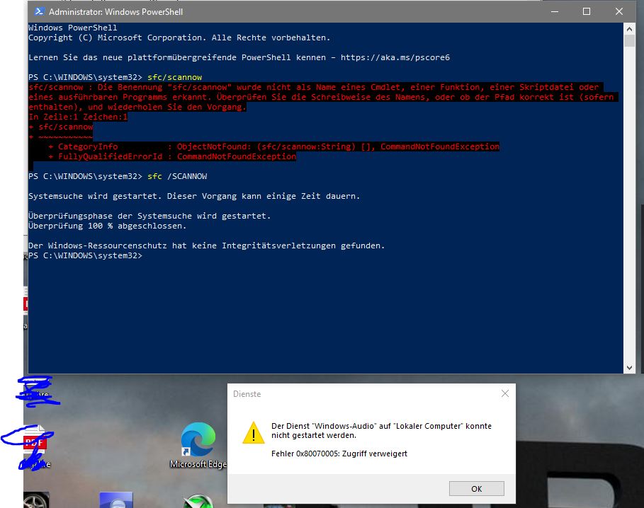 1. Dienst starten... geht nicht (Siehe Screenshot)