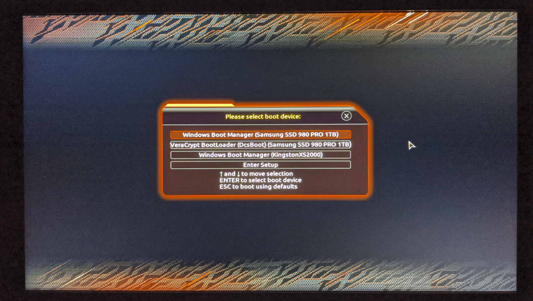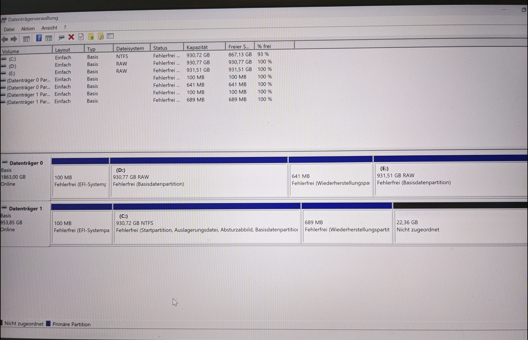 In meinem Notebook steckt nur eine M.2 SSD, auf welcher sich ein mit VeraCrypt verschlüsseltes Windows befindet. In meinem Desktop PC stecken 3 M.2 SSDs, welche auch alle mit Verycrypt verschlüsselt sind. Eine SSD enthält auch eine Windows Installtion. Die anderen SSDs enthalten nur normale Daten.