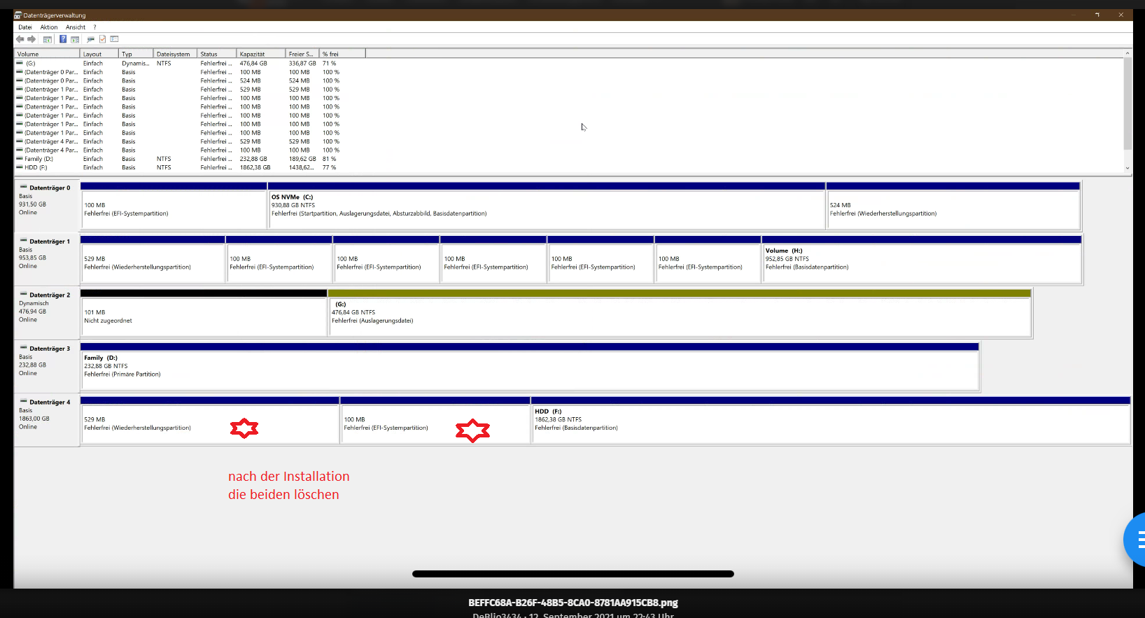 Alle Platten mit einem Tool "von außen" partitionieren: das Ergebnis wird sein: die Daten befinden sich im Datenhimmel in guter Gesellschaft. Ich z.B. habe schon viele meiner Daten dorthin geschickt!