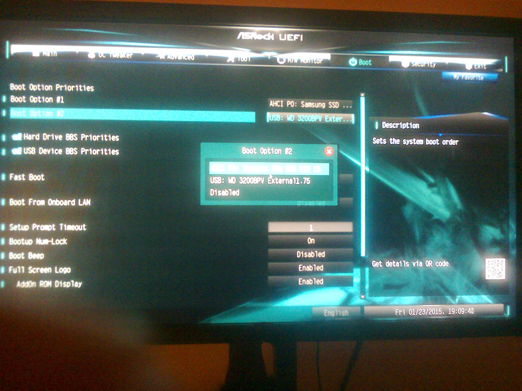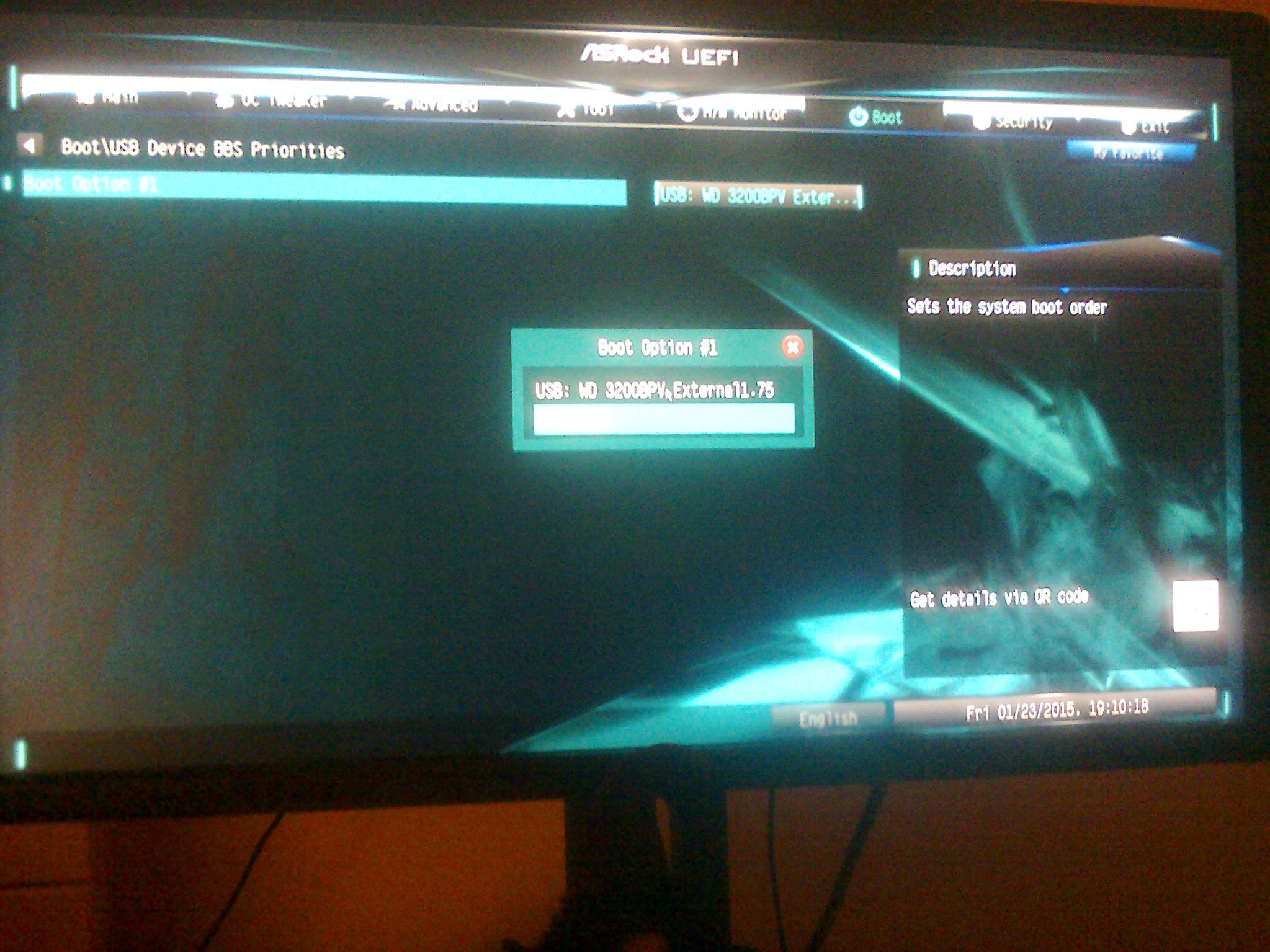 Das Problem ist, mein USB-Datenträger (WD Elements) wird nicht als Installationsmodul erkannt, nur als ein normaler Datenträger in den UEFI - boot Optionen. Der Datenträger sollte als "(UEFI) USB FAT32......" gelistet sein, wird allerdings nur als WD Elements gelistet.
