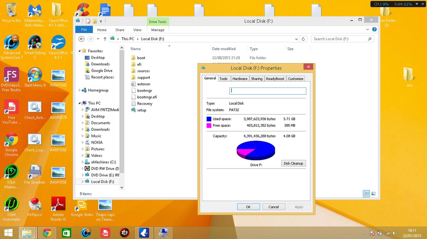 Mein Externe Festplatte wurde mit Rufus zu FAT32 formattiert, und die Windows Installationsdateien von einer ISO-Datei drauf gebrannt, auch durch Rufus.