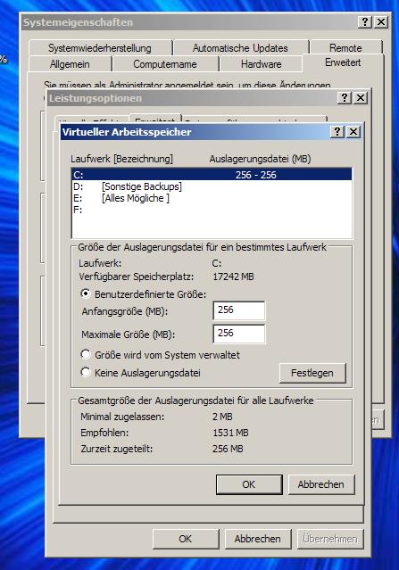 wäre es dann nicht besser eine dynamische Auslagerungsdatei unter der Verwaltung von Windows zu erstellen?