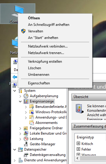 Rechte Maustaste auf das Arbeitsplatzsymbol/Computer, Verwalten anklicken und dann die Ereignisanzeige durchforsten.