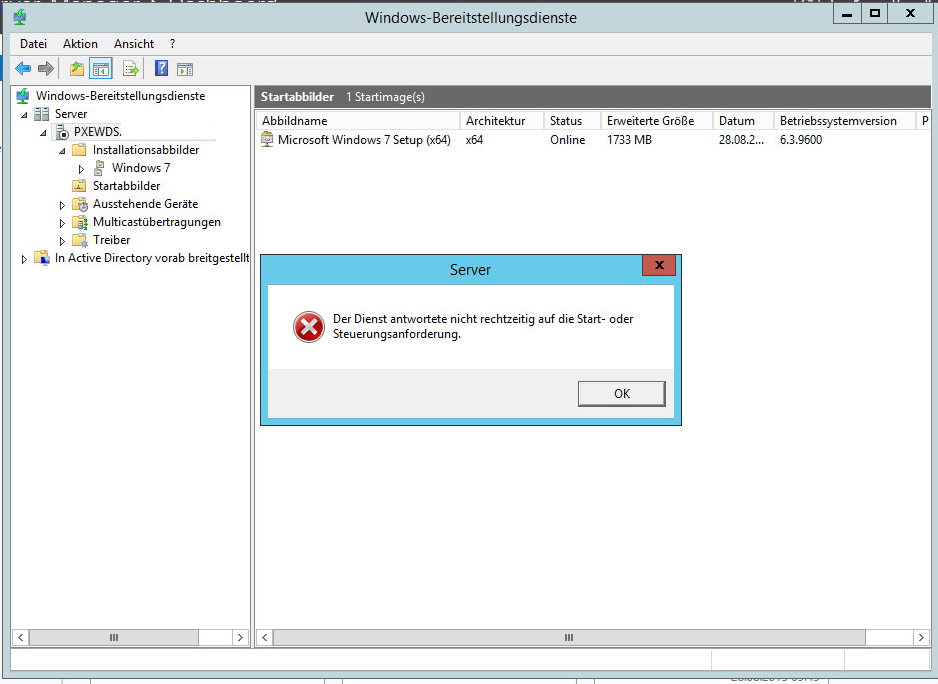 Wenn ich auf meinem WDS Server den Windows Bereitstellungsdienst Starten will kommt die Meldung: