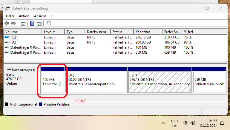Ich habe dann CHSDSK c: /f /r ausgeführt. Als ich zurückgekommen bin, gab es allerdings nur einen schwarzen Bildschirm mit "Main HDD not found". Nach dem Neustart hatte ich mehrfach Probleme, dass die Disk D: nicht erkannt wurde. Kopiervorgänge für das Backup waren auch äußerst langsam und wankelmütig.