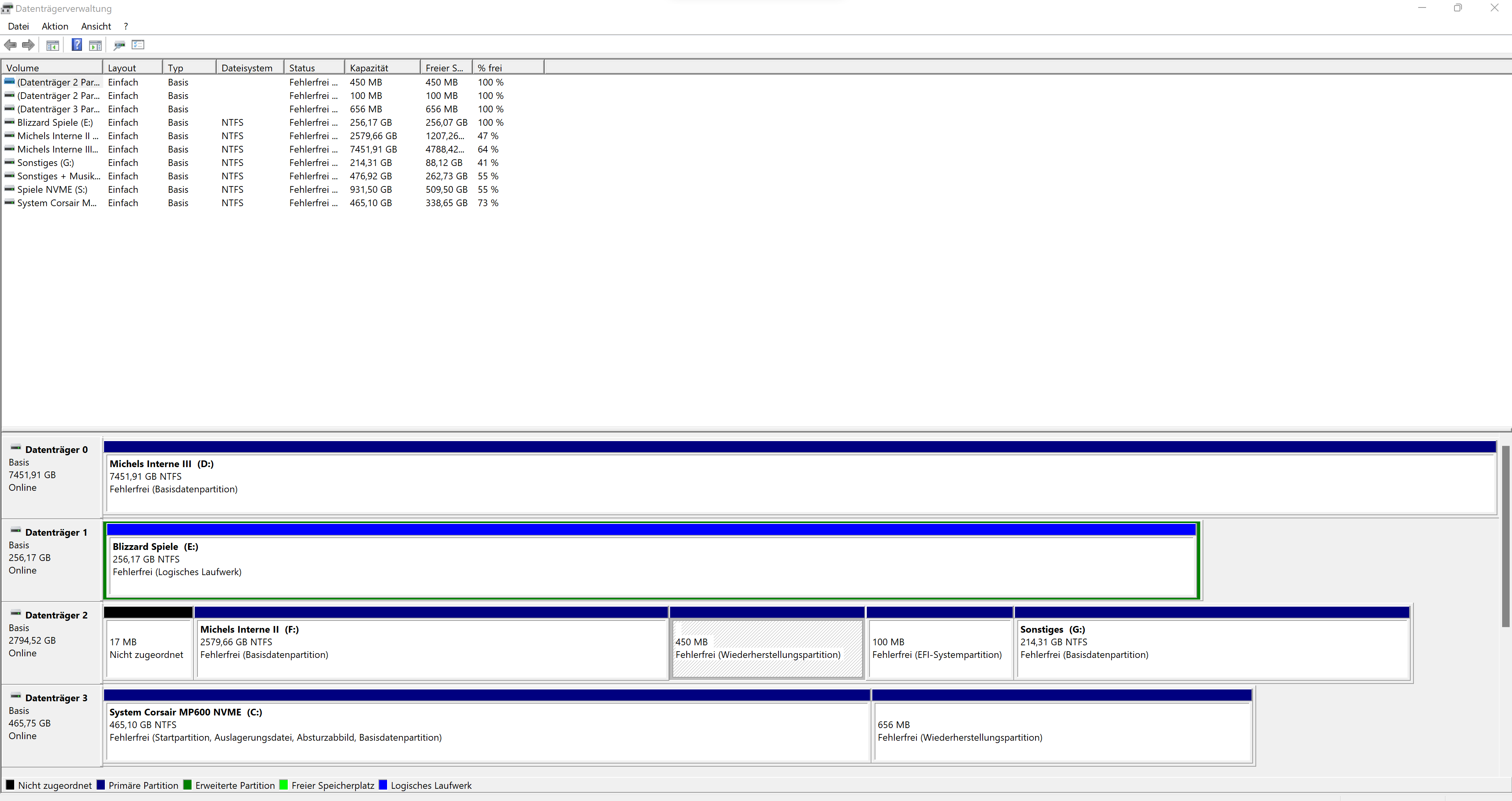 Die neue 2TB SSD ist auf dem Screenshot noch nicht zu sehen, da ich das Sata-Kabel für die Festplatte gebraucht habe -.-