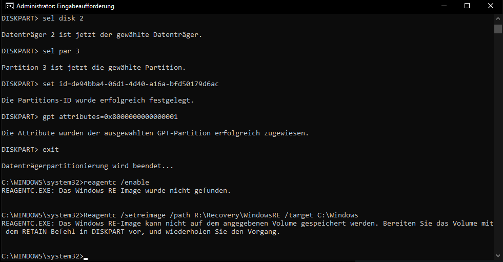 Immer wenn der Partition Wizard im Spiel war, funktioniert etwas mit der Recovery nicht!