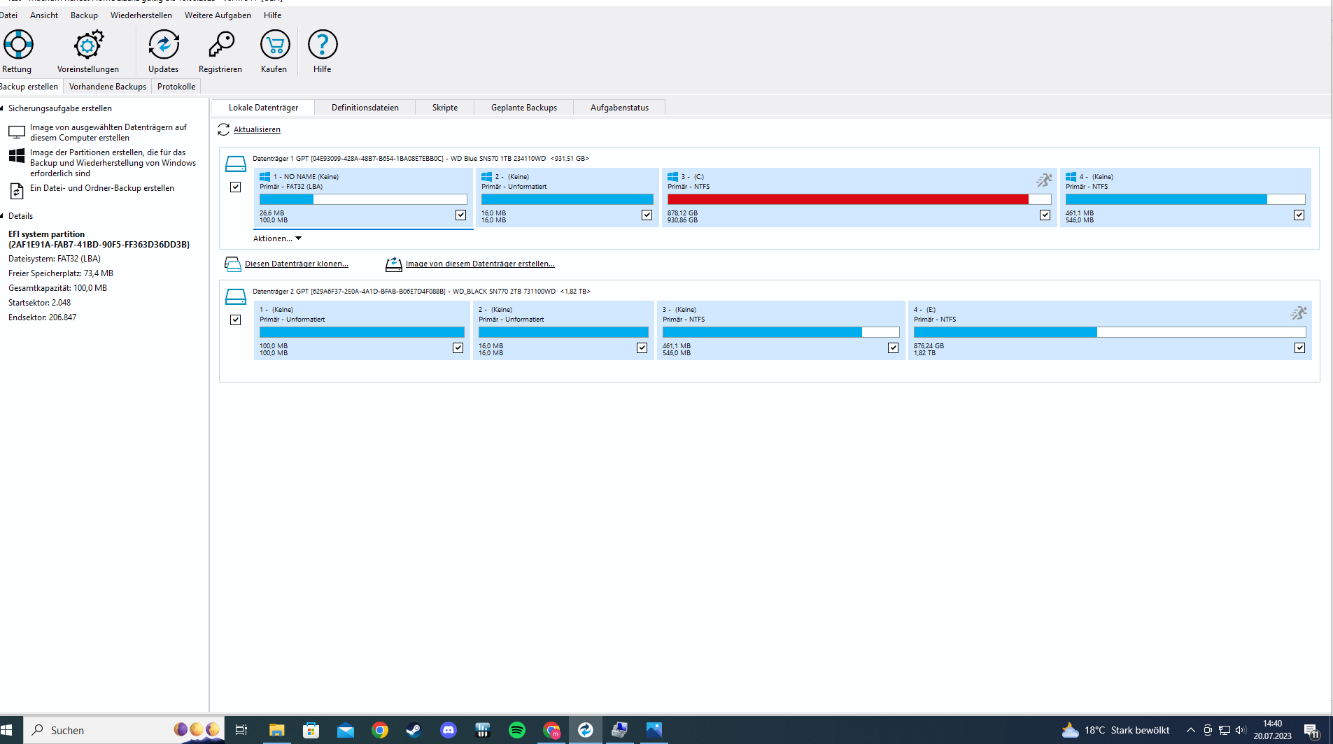 Einmal von der Datenträgerverwaltung und einmal Macrium Reflect