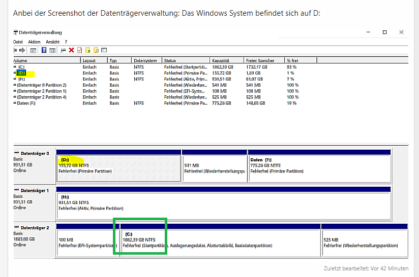 Meine System-SSD wurde in einem anderen PC verwendet (nicht als Bootlaufwerk, sondern nur um auf die Daten zuzugreifen). Nach Rückbau der SSD in den alten kann ich nicht mehr von der SSD booten. Im UEFI erscheint sie ganz normal, wird erkannt und die Boot-Reihenfolge stimmt auch.