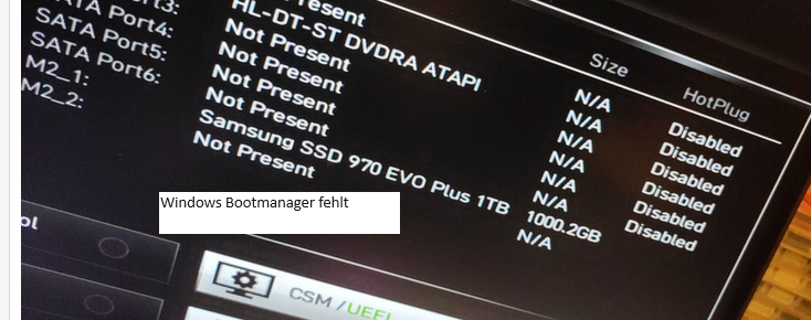 Also hast du auf die 1TB SSD noch gar kein Windows installiert, dann mach das mal.