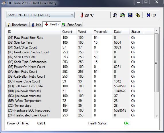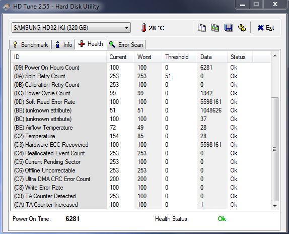 btw. bei mir war bei Health alles OK, aber der Speed bei HD Tune war im Schnitt bei 70MB/s