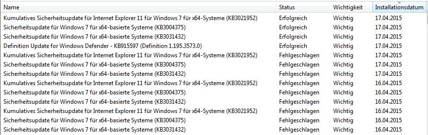 Es handelt sich mit großer Wahrscheinlichkeit um ein Windows-Update Problem, was hoffentlich bald von MS gefixt wird.