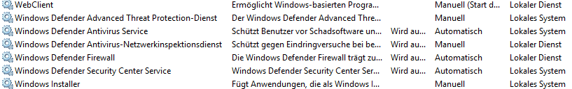 Unter "Dienste" gibt es 4 Einträge zum Defender, aber ausgerechnet der "Viren und Bedrohungsschutz", das einzige Modul, was ich auch laufen lassen möchte (keine Firewall), verweigert nun den Start mit einer Fehlermeldung.
