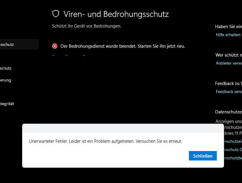 Nach dem Upgrade lief zunächst alles problemlos: der Defender war wieder aktiv, Windows Updates zeigten keine offenen Updates an, und das System schien stabil.