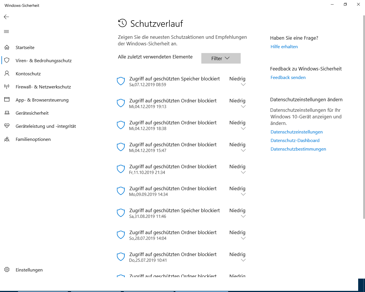 Möchte gerne auf meinem Rechner (W10/Version1909-18363.628) im Defender den Schutzverlauf der Übersichtlichkeit halber löschen.