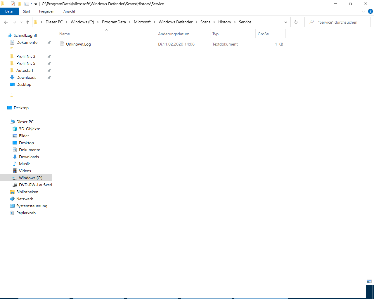 Alle Tipps aus dem Netz (u.a. Deskmodder) über Powershell oder den Eintrag unter C:\ProgramData\Microsoft\Windows Defender\Scans\History\Service löschen funktionieren nicht.