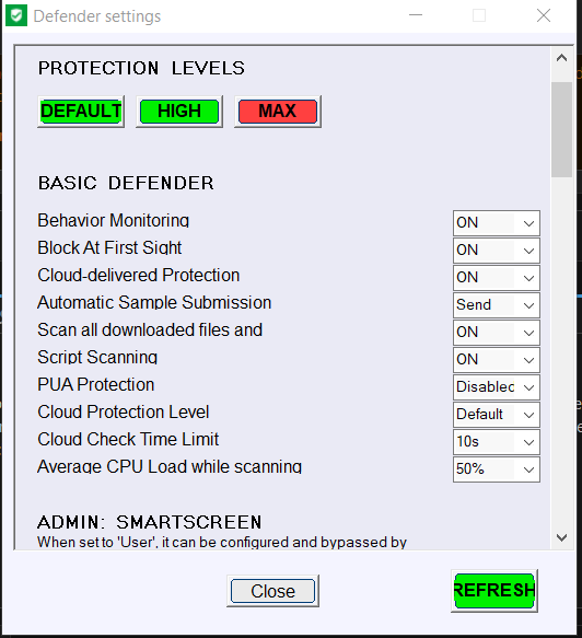 habe eine kleine Dummheit begannen. Hab mit dem Tool "Configure Defender" gespielt und spasseshalber die Einstellungen auf MAX gestellt (wobei hier der Klickfinger schneller war als der Verstand