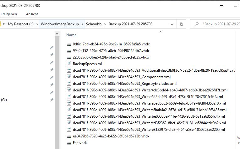 Ich möchte EINE Datei aus meiner Sicherung wiederherstellen. Diese befindet sich auf einer externen Festplatte unter WindowsImageBackup und enthält diverse vhdx Dateien.