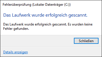 @Grimba: Achso, danke. Ich habe das Laufwerk überprüft, aber es heißt, dass ken Fehler vorliegt.