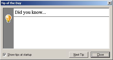 Ich hab' hier auch noch Einen (Tip of the day), ich weiß aber nicht, von welchem Programm der war...