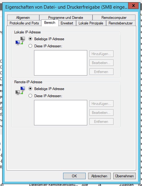 ich bin gerade dabei, Windows Firewalls zu konfigurieren. Ich will bestimmte Ports für bestimmte Rechner sperren.
